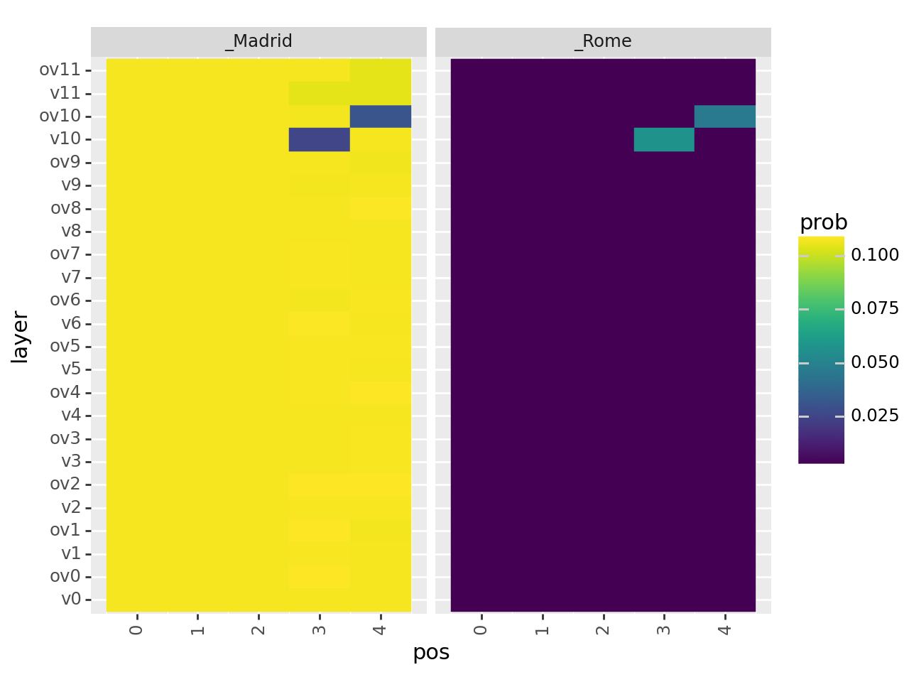 + geom_tile(aes(x="pos", y="layer", fill="prob", color="prob"))