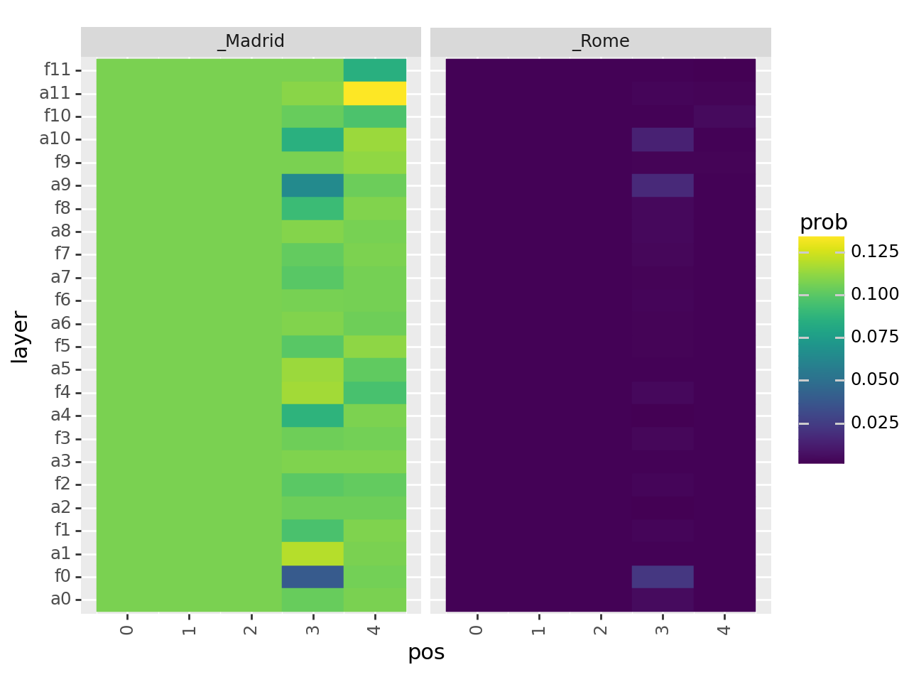 + geom_tile(aes(x="pos", y="layer", fill="prob", color="prob"))