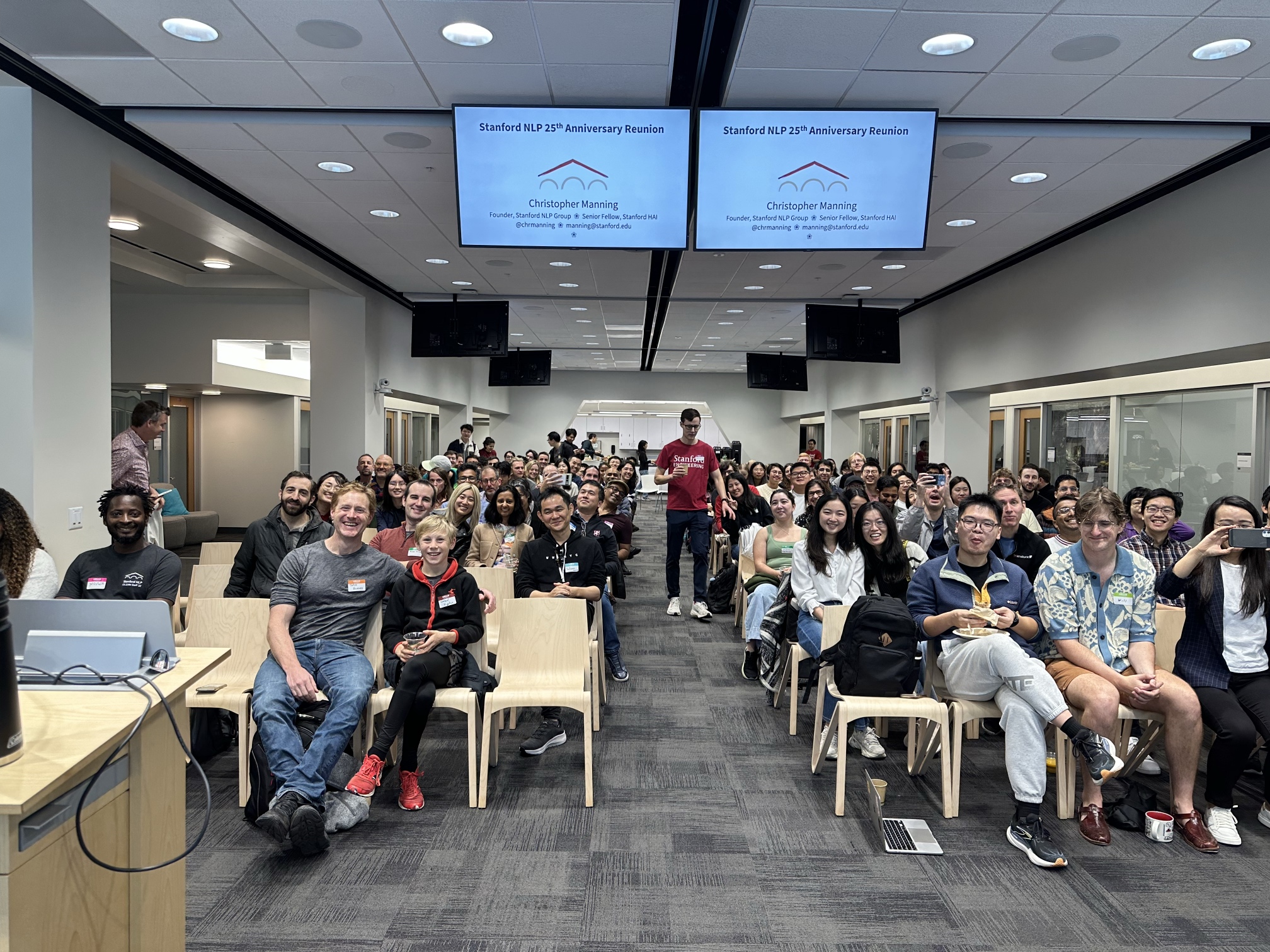 We were delighted to welcome so many of our alumni back for a 25th Stanford NLP Reunion in October 2025, held at the Gates Computer Science Building (in the HAI space, Gates 119, and the courtyard). Here are a few photos of the event. There are more in a Google Photos folder for attendees.